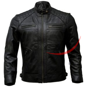 Black Real Leather Bomber Jacket Quilted Detachable Hooded