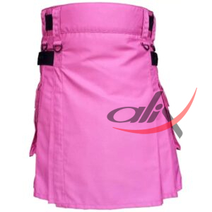 Pink Cotton Utility Kilt with adjustable Leather Straps