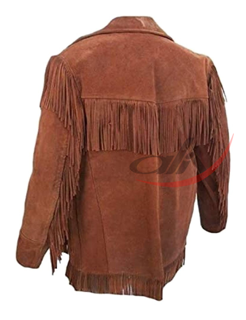 Men's Cowboy Suede Jacket Fringed & Bone Work