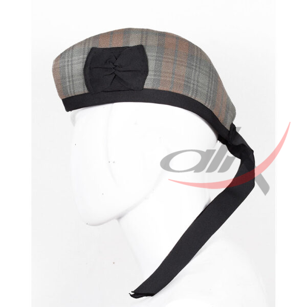 Glengarry Hat Black Watch Weathered Tartan Scottish Glengarry bonnets are available in a variety of clan tartans & colors, each Glengarry hat is decorated with a toorie on the top, along with a rosette to the side and ribbons attached to the rear.