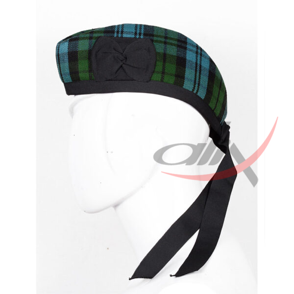 Glengarry Hat Campbell Ancient Tartan Our Glengarry bonnets are available in a variety of clan tartans & colors, each Glengarry hat is decorated with a toorie on the top, along with a rosette to the side and ribbons attached to the rear.