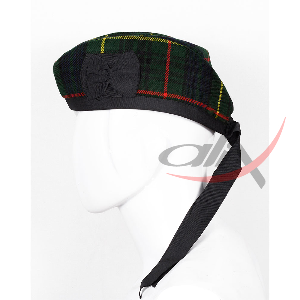Glengarry Hat Gunn Tartan Scottish Our Glengarry bonnets are available in a variety of clan tartans & colors, each Glengarry hat is decorated with a toorie on the top, along with a rosette to the side and ribbons attached to the rear.