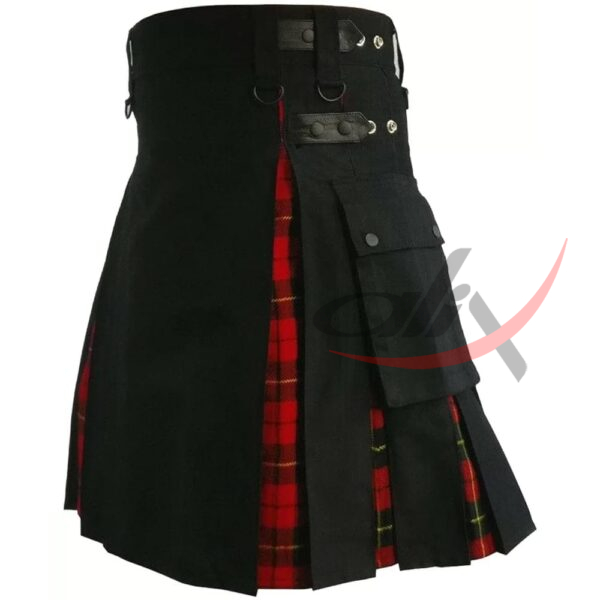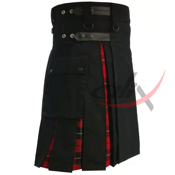 Hybrid Kilt Black Cotton & Wallace Tartan Utility