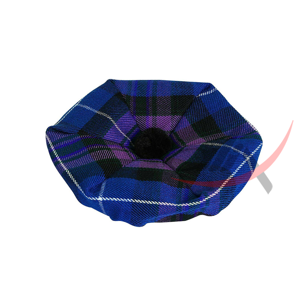 Available in more than 100 clan tartans with express delivery worldwide, this Scottish bonnet will a great add to your kilt and heritage wardrobe. Made of acrylic fabric, our hats are soft, cosy and have a matching elasticated wool headband and pom pom, our Tammie hats have a satin type lining inside the tam. You can also pair your tam o’ shanter with one of our tartan scarfs or fly plaid for a truly Scottish look.