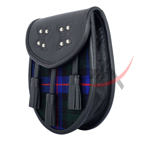 Experience the epitome of Scottish tradition with our exquisite Black Leather Scottish Sporran featuring the iconic Clan Anderson Tartan. Meticulously handcrafted from premium black leather, this sporran combines style, functionality, and heritage in one exceptional piece.