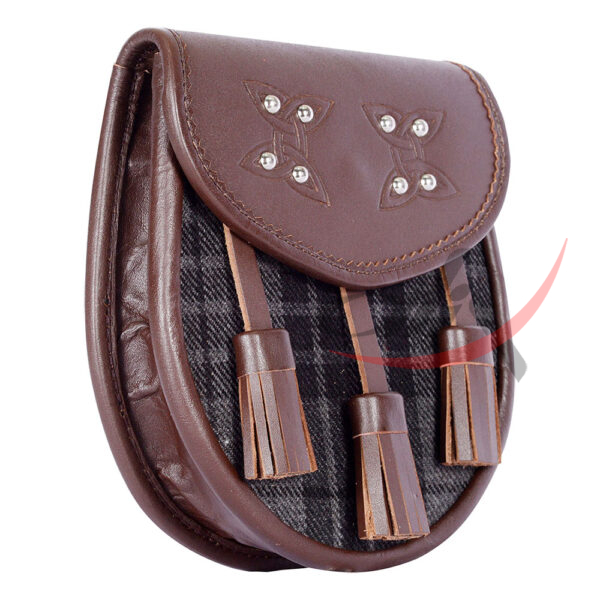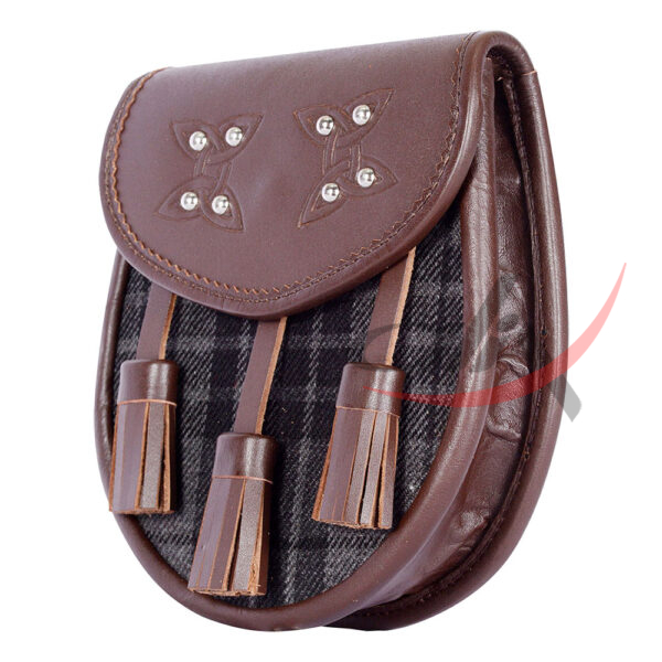 Scottish Sporran Grey Watch Tartan Brown Leather