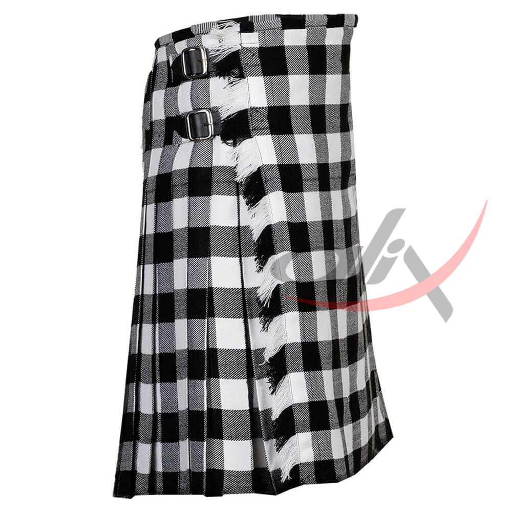 White Black Rob Roy Tartan 8 Yard Kilt for Men